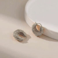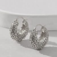 Diamond Pattern Half Hoop Earrings for Women are an exquisite and elegant accessory that combines classic design with the sparkle of diamonds. These earrings typically feature a half-hoop shape adorned with a diamond pattern, often crafted from precious metals like gold or silver and studded with dazzling diamonds.