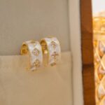 Crafted with meticulous attention to detail, these earrings are designed to gracefully curve around the lower part of your earlobe, offering a timeless and luxurious look. The diamond pattern adds brilliance and sophistication to the earrings, making them suitable for various occasions, from formal events to special celebrations.