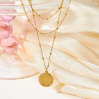 Stainless Steel Stereoscopic Sun Coin Necklace For Women
