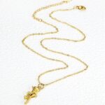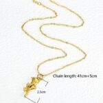 At its heart, this necklace features a resplendent rose-shaped pendant, skillfully crafted from stainless steel and plated with a lustrous layer of gold. The pendant captures the intricate details and delicate curves of a real rose in full bloom, creating a piece that exudes both grace and sophistication.