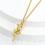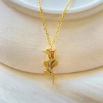 The “Golden Bloom Stainless Steel Rose Pendant Necklace” is a striking and elegant piece of jewelry that effortlessly combines the allure of nature with the durability of stainless steel, all accented by the opulence of gold plating. This necklace is a true embodiment of timeless beauty and craftsmanship.