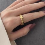 Elevate your style with our Golden Grove Chunky Bamboo Statement Ring. Crafted with precision and plated in radiant 18K gold, this bold and unique piece adds a touch of nature-inspired glamour to your look. Make a statement with fashion that speaks volumes. Shop now and embrace the allure of this distinctive bamboo-inspired ring.