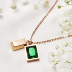 In the variation of white and Green Stone with Golden Square double Pendant Necklace is a striking and elegant jewelry piece that combines the allure of rich green and radiant gold. The pendant, featuring a square shape, showcases a mesmerizing green gemstone or enamel centerpiece framed by golden accents, creating a captivating focal point. Crafted with meticulous attention to detail, this necklace offers a harmonious blend of colors and a touch of sophistication