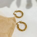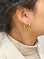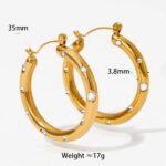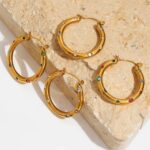 Shiny Stones Gold Circle Earrings are a dazzling and eye-catching jewelry choice that features circular or hoop-shaped designs crafted from gold and adorned with sparkling stones. These earrings typically incorporate gemstones such as diamonds, cubic zirconia, or other shimmering accents, creating a radiant and luxurious aesthetic.