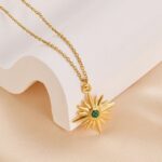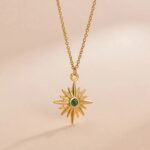 The “Stellar Radiance 18K Gold Plated Necklace” is a breathtaking and luminous piece of jewelry that effortlessly combines celestial inspiration with the opulence of 18K gold plating. This necklace is a true embodiment of timeless elegance and celestial beauty.