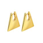 Triangle Hoop Earrings are a modern and artistic jewelry choice that incorporates geometric shapes into the design, creating a distinctive and eye-catching aesthetic. These earrings typically feature hoop-shaped designs with a triangular element, often crafted from materials like metal or resin. Crafted with meticulous attention to detail, these earrings are designed to make a statement with their unique geometric form. The addition of the triangular shape adds depth and visual interest to the hoops, making them suitable for various occasions, from casual outings to special events.